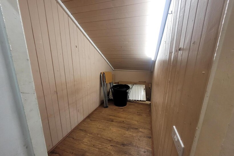 Access to the premises is afforded via a single recessed entrance door, protected by metal railings.