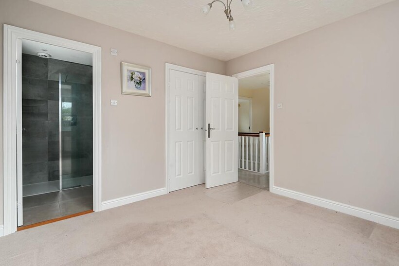 Upstairs is the master bedroom with modern fitted en-suite shower room and doube in-built wardrobes. Two further double bedrooms, fourth large single/small double bedroom and a modern fitted family bathroom. Airing cupboard.