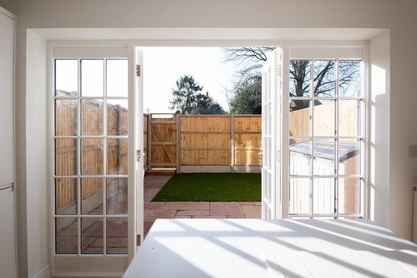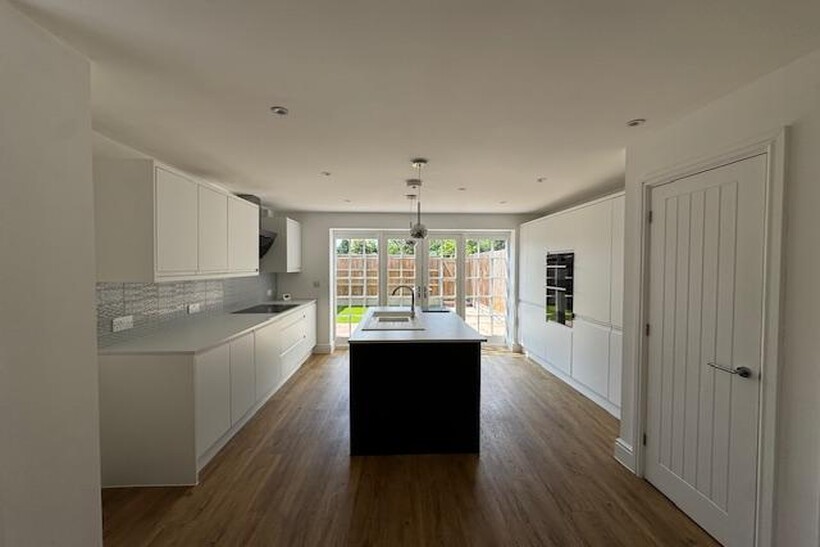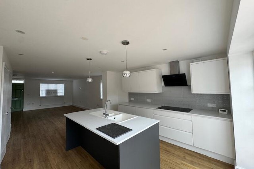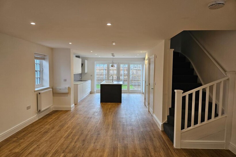 The property has a stylish modern kitchen with island unit, induction hob, double ovens and plenty of cupboard storage. It benefits from having a downstairs toilet and direct access to the rear courtyard via the Double patio doors, the south facing courtyard gardens have sunshine throughout the day and side access with gate to the parking area.