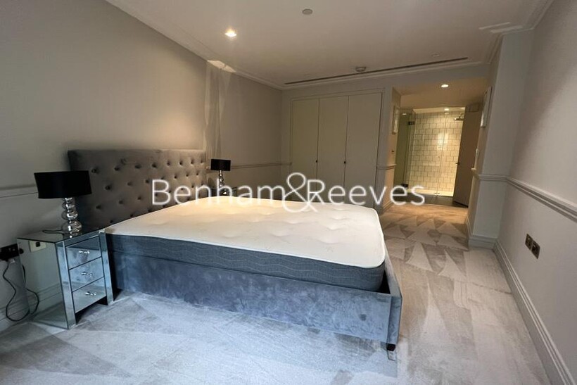 An exceptionally spacious apartment set on the 5th floor of Queens Wharf located next to the Grade II listed Hammersmith Bridge in Hammersmith W6. Comprising a roomy open plan fitted designer kitchen handless doors, stone worktops, open shelving and integrated Miele appliances including oven and hob with extractor fan, fridge/freezer and dishwasher / spacious living area leading to a balcony, luxurious double bedroom with dressing room, en-suite bathroom boasting porcelain floor tiles, composite stone vanity top, mirrored cabinetry, white sanitary-ware and a chrome heated towel rail, and fitted high-pile carpet. There is a separate W/C, utility room and study.