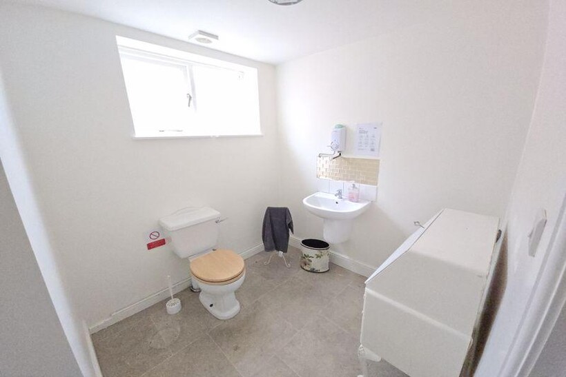 Window to rear elevation, fitted with a low level W/C and wall mounted wash hand basin.