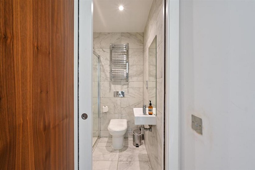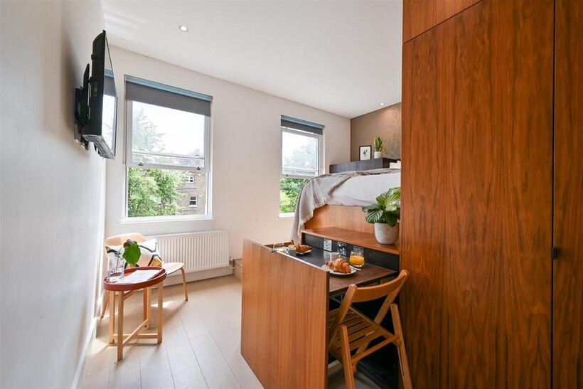 Spacious open-plan, studio apartment, fully furnished with a comfy double bed and plenty of storage space underneath. In the kitchenette (that can also be closed off when not in use), you will find 2 x induction hobs, a sink, a microwave and an under-the-counter fridge with freezer box. You'll also find additional storage either next to, or at the end of the bed. There's also a pull -out table/desk complete with plug sockets and a comfy armchair - the perfect spot for your morning coffee. The en-suite is modern and bright with a walk-in shower and white and metallic finishes throughout.If the landlord agrees to you having a pet, you may be required to pay a higher weekly rent.