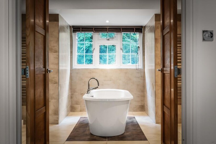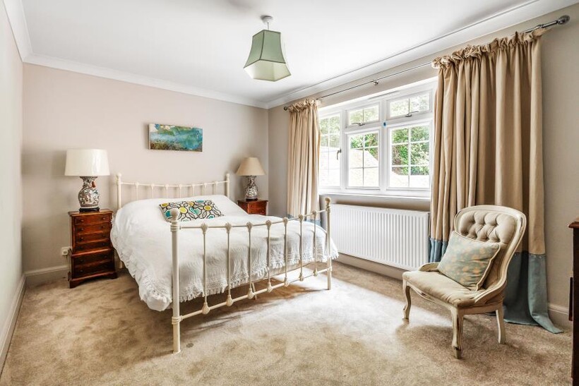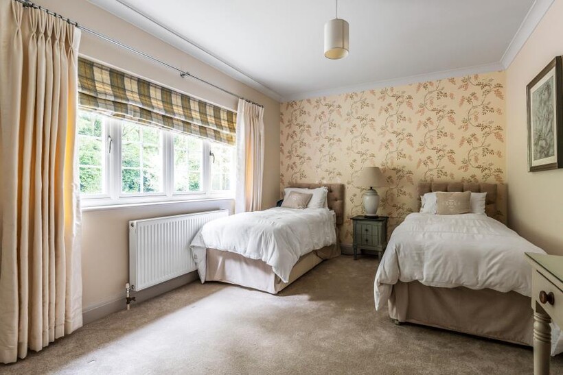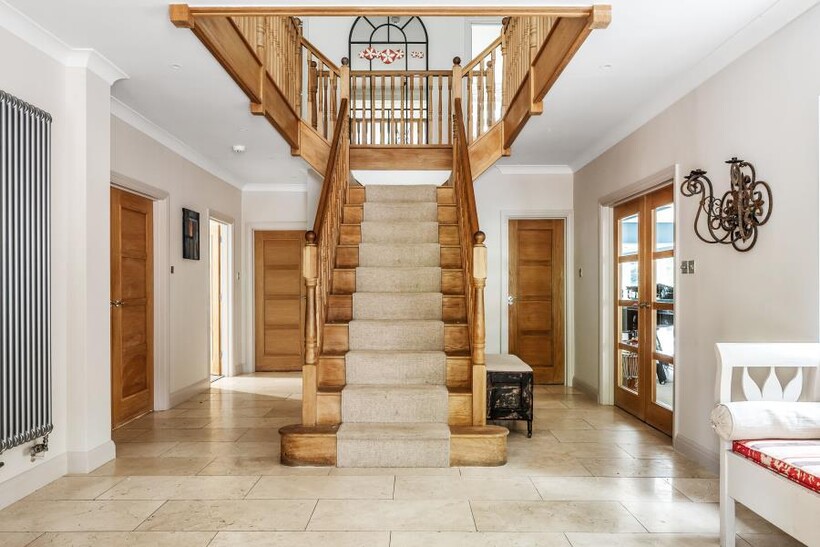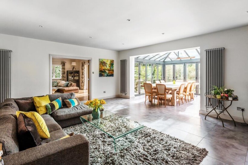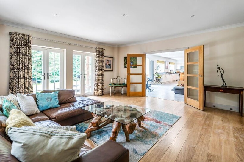 Ascan Croft is a remarkable family home that has undergone extensive renovation and expansion in the past four years. Set over two floors, the house offers spacious, versatile living areas designed for both comfort and luxury. The heart of the home is a stunning kitchen/breakfast room, outfitted with premium appliances, including twin ovens, a built-in coffee machine, a wine fridge, and an American-style fridge freezer. This space connects to a bright conservatory with bi-fold doors, creating an open flow to the garden. The family room, along with the drawing and dining rooms, both open onto a large southwest-facing terrace, ideal for outdoor entertaining.The impressive reception hall, featuring marble tiles and a sweeping staircase, creates a grand entrance to the home. A cinema room with a ceiling-mounted projector and fixed screen provides a perfect space for entertainment. There is also a versatile guest suite on the ground floor, complete with a bedroom, shower room, and study, which could function as a self-contained annexe.