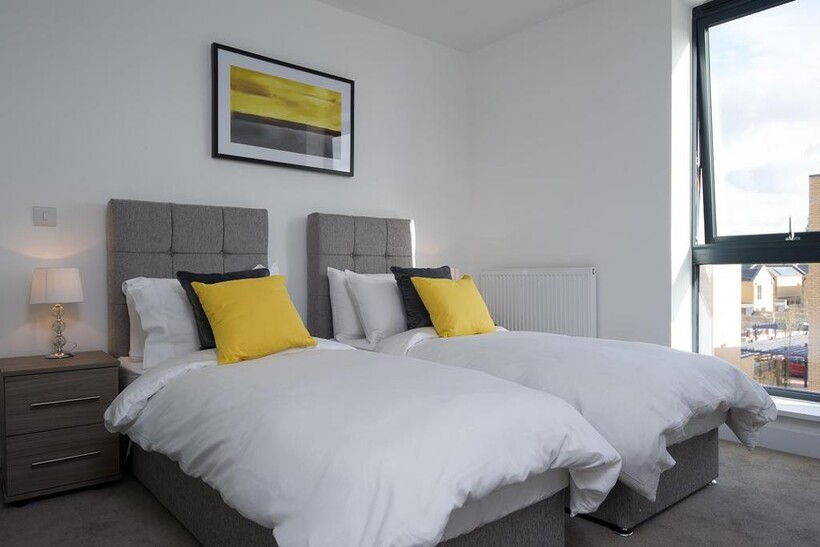This modern two-bedroom, two-bathroom apartment is located on the first floor of a small block of apartments, just a short walk from Addenbrookes and the bio-medical campus.