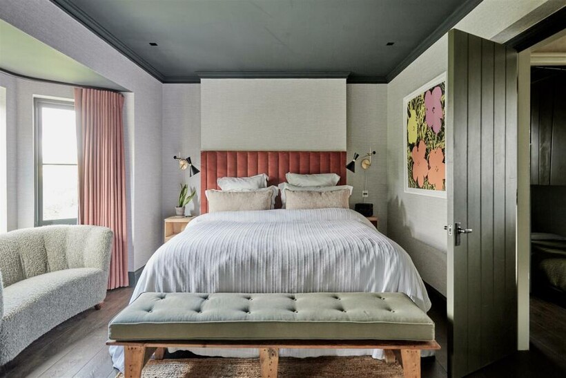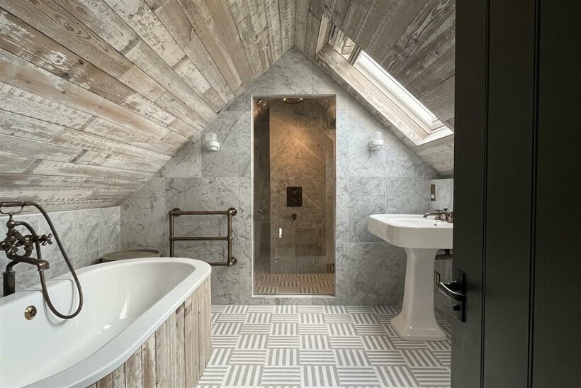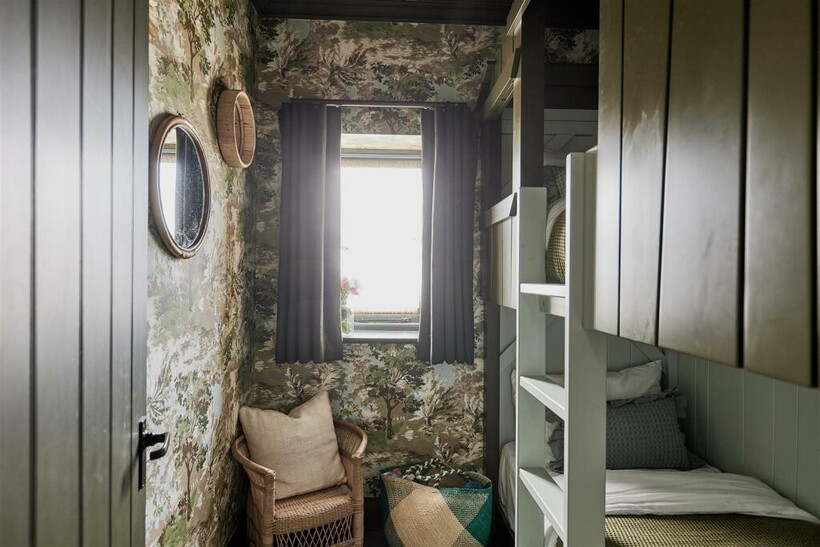 1) First Floor Bedroom Suite - Emperor size bed [2mx2m], Danish banana sofa in bay window, bench, wardrobe, ensuite bathroom with large Lefroy Brooks double ended bath, shower enclosure, enclosed toilet room, double basins with concealed storage, shaver socket, all Water Monopoly aged brass fittings.2) First Floor Bunk Room – Small Treehouse bunk bed room [2x small single beds] for two children, draws outside, kids chair, mirrors3) Loft Bedroom Suite – Emperor size bed [2mx2m], Deep armchair, lamp, wardrobe, Drawers, there is a bathroom adjacent that can be accessed without going through the bedroom, large double ended bath, shower enclosure, toilet and single basin, shaver socket, all Water Monopoly aged brass fittings.4) Annex Bedroom Suite - the annex is at ground floor and is detached but only by a few meters from the kitchen - Emperor size bed [2mx2m], Sofa, Coffee table, cabinet, Wardrobe, 43” TV, Ensuite bathroom with shower enclosure, toilet enclosure, Single basin, shaver socket, Drawers, all Water Monopoly aged brass fittings.