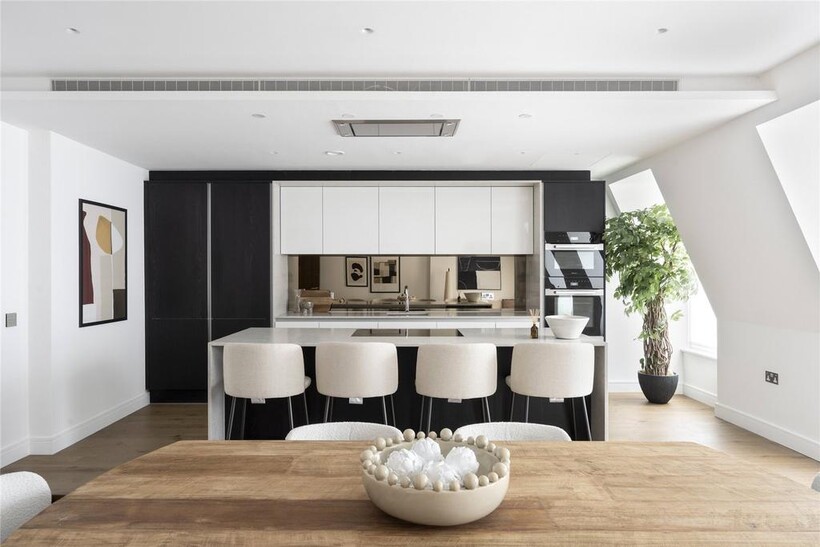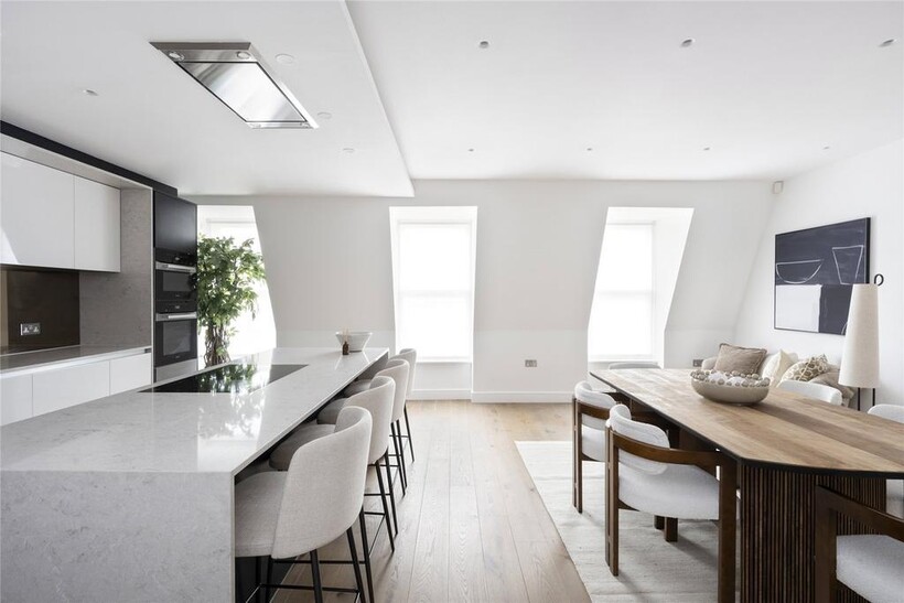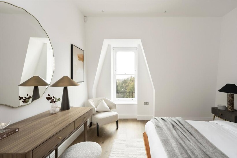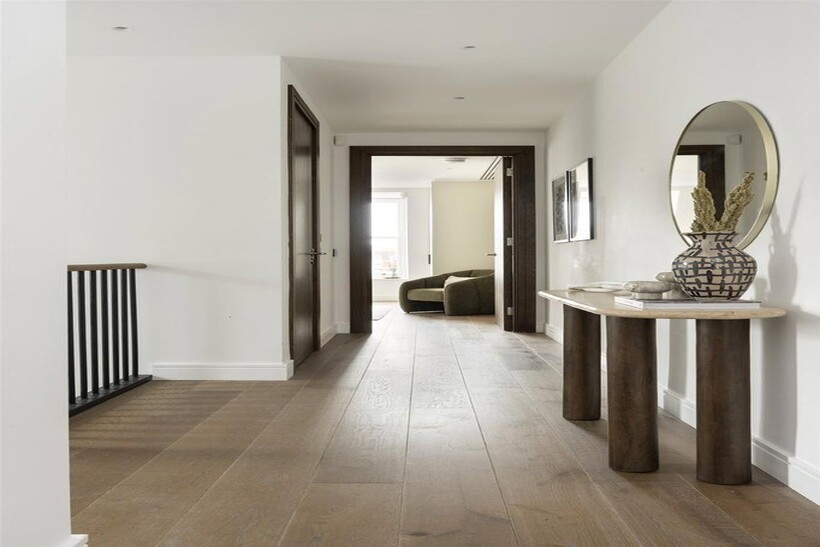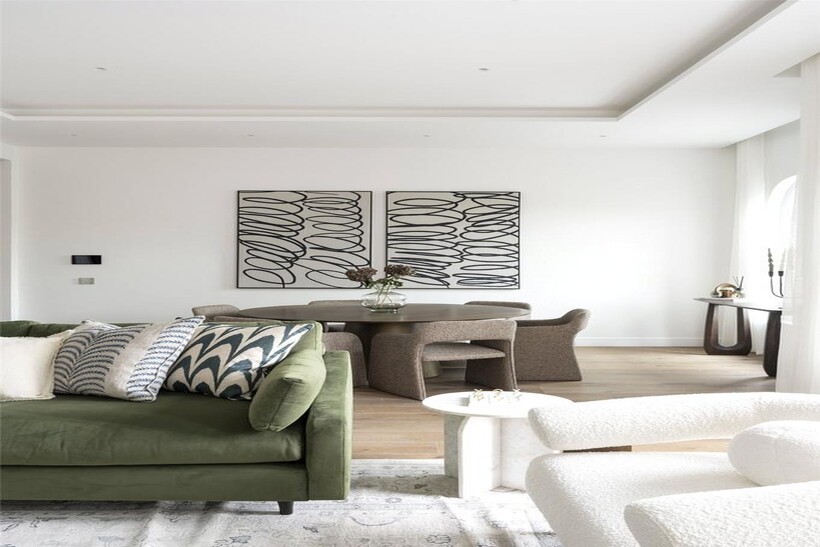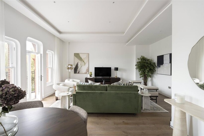 Proudly overlooking Hyde Park since 1893, this majestic red-brick building stands as an ode to Victorian grandeur. Arranged across the fourth floor, timeless contemporary design makes a statement.Beyond a polished lobby with a discreet concierge, interiors echo the tranquillity of the location. A palette of earthy tones instils calm in the reception room, where a series of sash windows filter in natural light. Divided into designated spaces for lounging and dining, to one side plush soft furnishings invite conversation around a statement centrepiece. To the other, an oval dining table seats six.