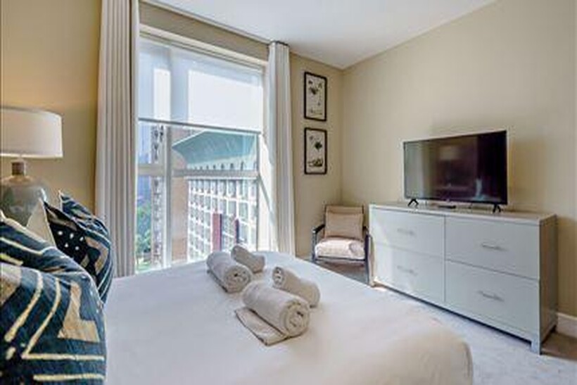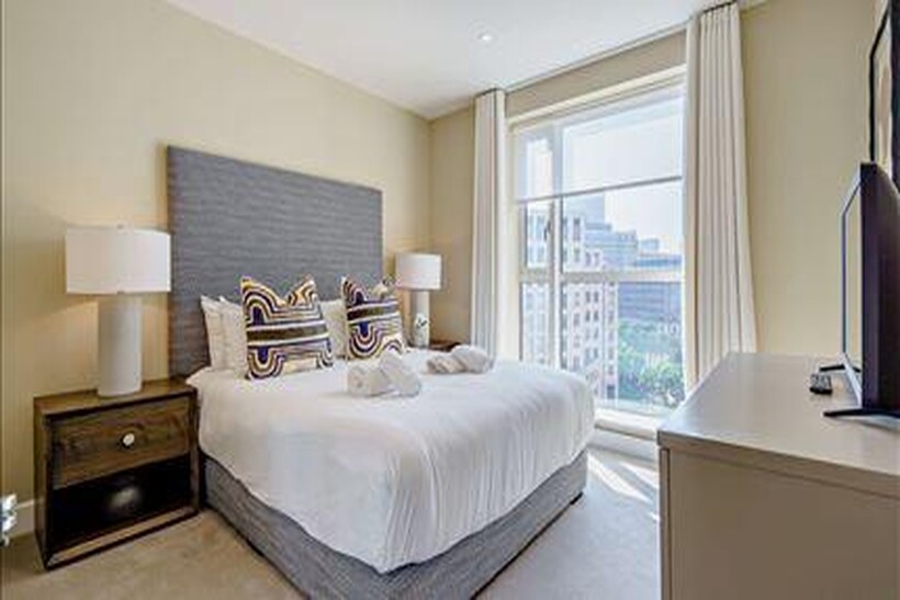 The primary bedroom benefits from a marble en-suite bathroom, with additional family bathroom in the apartment.Bedrooms are spacious with king size beds and fully furnished with bespoke fitted mirrored wardrobes, luxury carpet and furnishings. A new AV systems has been installed, including fibre broadband, large 55” LG Smart TV in the reception room and a Smart TVs in the bedrooms.