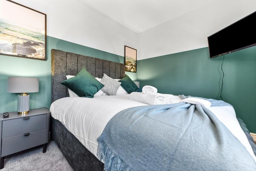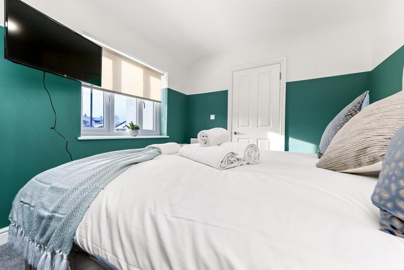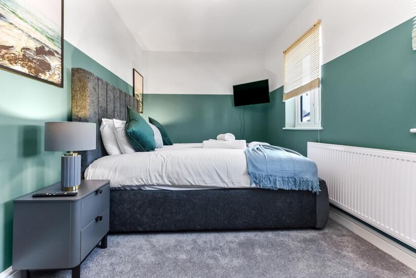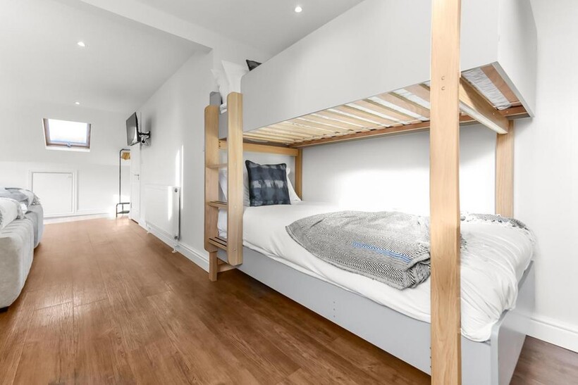 Inside, there are four bedrooms and plenty of space for large groups. Two of the bedrooms have double beds, one has two single beds, and there’s a room with a bunk bed too. All beds are made up of hotel-quality linens during the professional clean before your stay. We also provide fresh towels for each guest, as well as complimentary toiletries