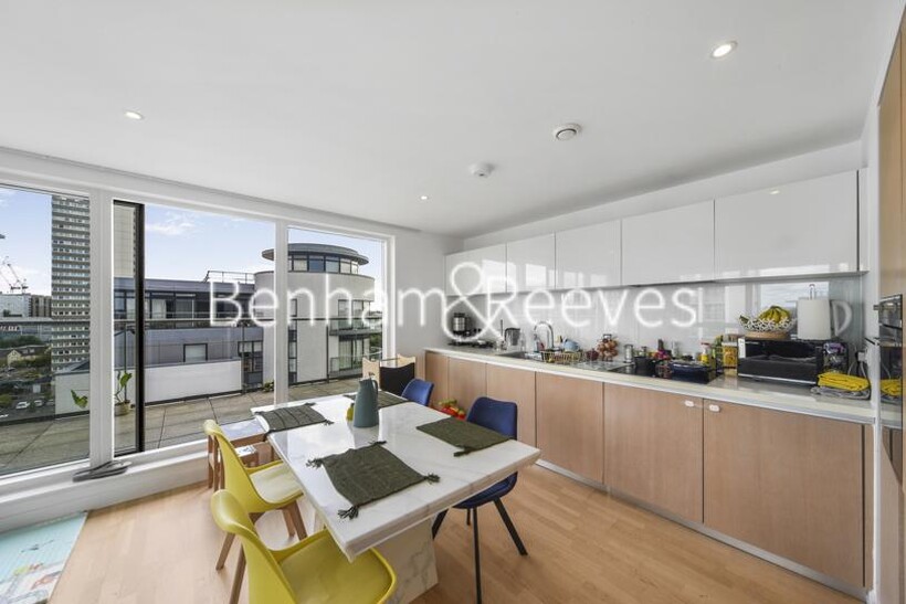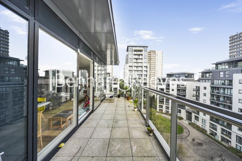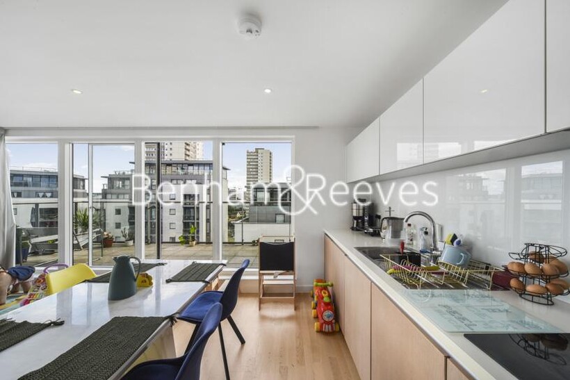 Bright apartment set on the top floor of Aitons House situated within the Kew Bridge West development by St James, close to the amenities of Kew Village and a short walk from Kew Bridge mainline station, which has a direct service to Waterloo in just 30 minutes. Offered on a furnished basis and comprising an open plan reception room with wood floors, dining space and floor-to-ceiling windows leading out to a private terrace. There is a fully fitted modern kitchen with integrated appliances, double bedrooms with storage space, en-suite shower room to the main, and a separate family bathroom with tiled walls and large mirrored cabinets.
