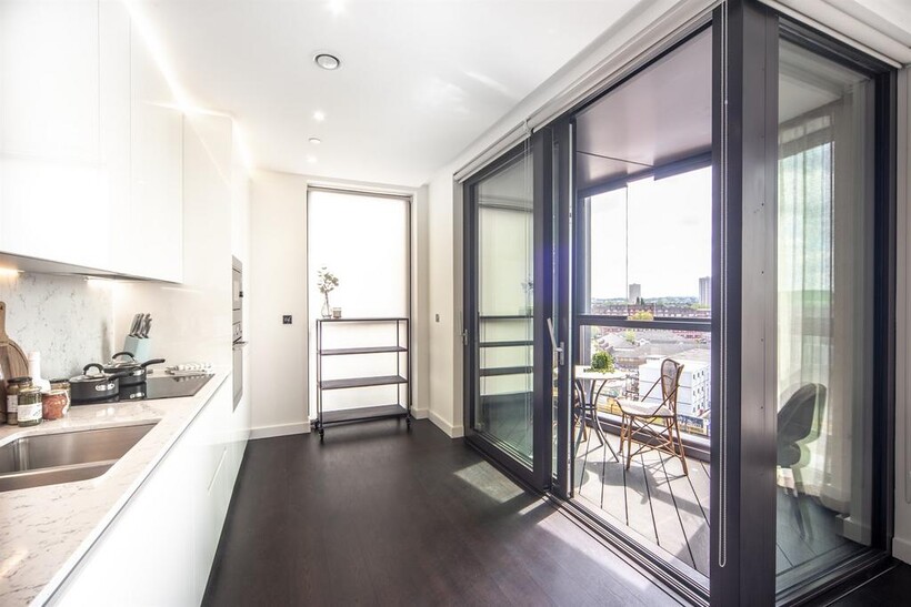 The apartment comprises a spacious reception room complete with Samsung Smart TV's with Bose sound bars incorporating a built in Amazon Alexa to control the apartments lighting, TV and heating systems along with a private winter garden creating a further living area. The reception room is open plan with a fully fitted kitchen featuring integrated AEG appliances with floor to ceiling windows providing far reaching views across London. The apartment offers two double-bedrooms, two-bathrooms, one of which is an en-suite bathroom from the master bedroom as well as a private balcony accessed via the reception area and one of the bedrooms. The apartment also benefits from ample storage space.
