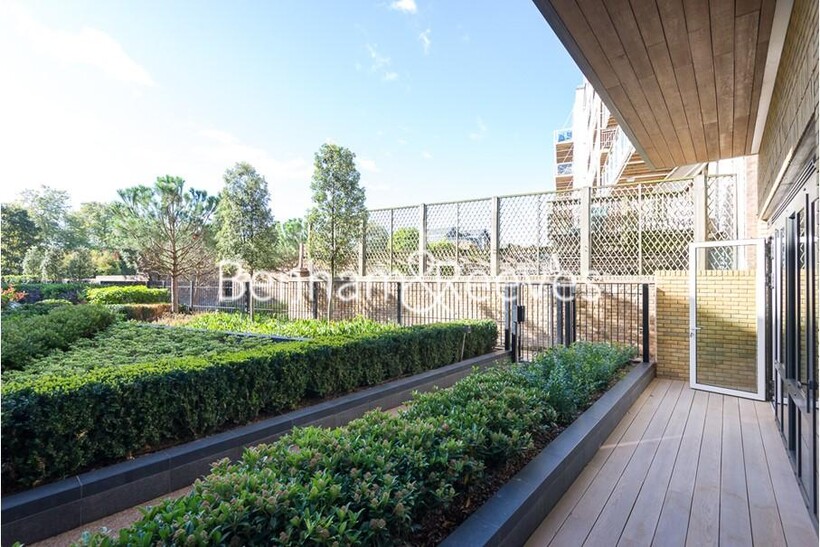 Contemporary apartment located on the fifth floor of Golding House, with magnificent entrance halls, common halls, entrance doors and hallways in the desirable development of Beaufort Park in North West London. The apartment comprises large open plan living space with floor-to-ceiling windows affording plenty of natural light and wood floors, offering access to the private balcony overlooking the communal gardens. The open plan fully fitted kitchen has a breakfast bar. There is double bedroom and a three-piece modern bathroom with power shower. The apartment is offered on a furnished basis with onsite management.