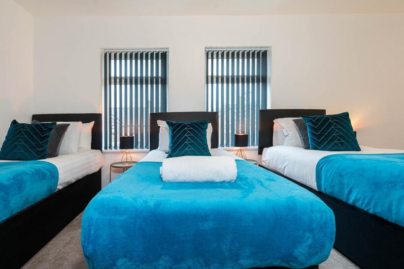 We highly recommend this type of accommodation for larger groups of business travellers. There are 3 single beds in bedroom 1, 2 single beds in bedroom 2 and 1 single bed in bedroom 3
