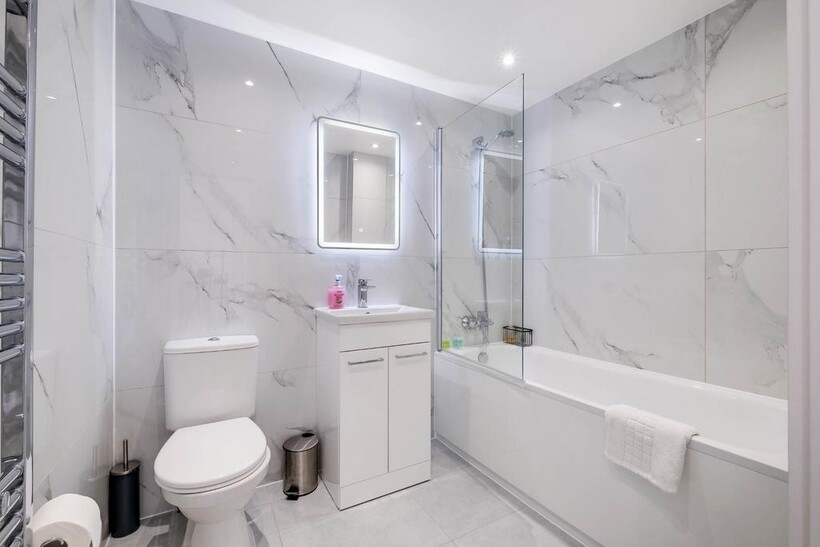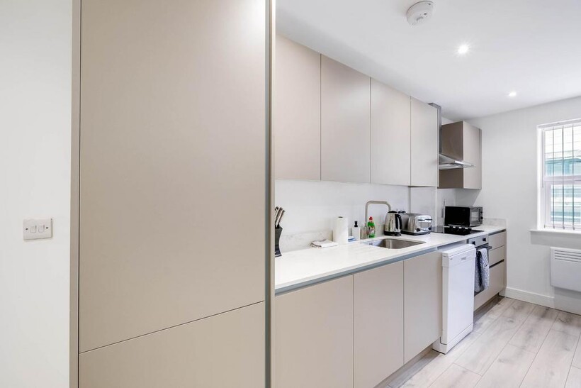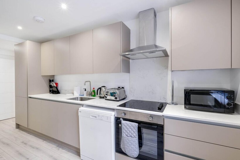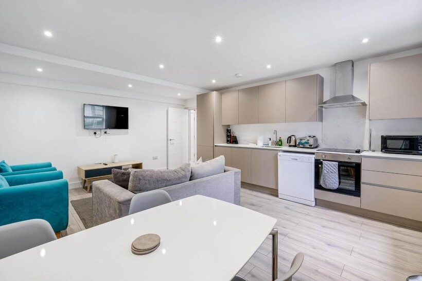 Newly refurbished 2 bedrooms apartment with a light and spacious feel, the fully equipped kitchen, lounge, and dining area with a four seater dining table will guarantee you a comfortable stay, with Smart TV and free WiFi. The meticulously designed one bedroom presents a king size bed where you can kick back relax and enjoy a well-deserved restful night's sleep after a long day. This modern apartment also includes a family bathroom with a bath and a shower over. The kitchen is fully equipped with all the utensils you require to make a meal or a snack along with a washing machine and dishwasher. The roof terrace garden has a spacious relaxing area ideal for you to enjoy in the summer months. Are you looking for a short-term let/rental, something normal letting agents don't offer?