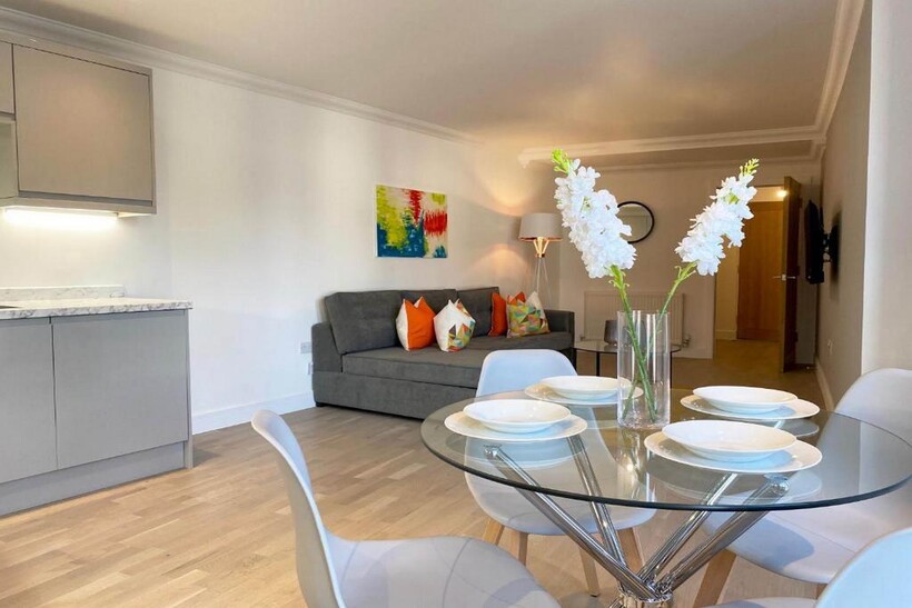 Presenting this 2 Bedroom modern Apartment in Rochester. This exquisite apartment comprises two bedrooms, one of which includes an en-suite bathroom, and also a family bathroom. The living room is furnished with comfortable seating, including a dining area with a table and chairs. For entertainment needs, we offer a Smart TV with internet connectivity, allowing you to easily access your Netflix and other streaming services. The kitchen is fully equipped, complete with a Fridge/Freezer, Microwave, Kettle, Toaster and Dishwasher, plus all necessary utensils and crockery. As for sleeping arrangements, the primary bedroom boasts a king size bed and bedside tables. Similarly, the second bedroom is outfitted with a king bed, along with a clothes rail and bedside tables. The main bathroom is thoughtfully arranged with a shower over a bath, accompanied by a sink and toilet. Notably, the master bedroom enjoys the convenience of an en-suite bathroom. The accommodation is fully equipped for your convenience and comfort. A standard stay includes weekly changes of linen and towels, while mid-stay cleaning services are available for an additional fee.Are you looking for a short-term let/rental, something normal letting agents don't offer?