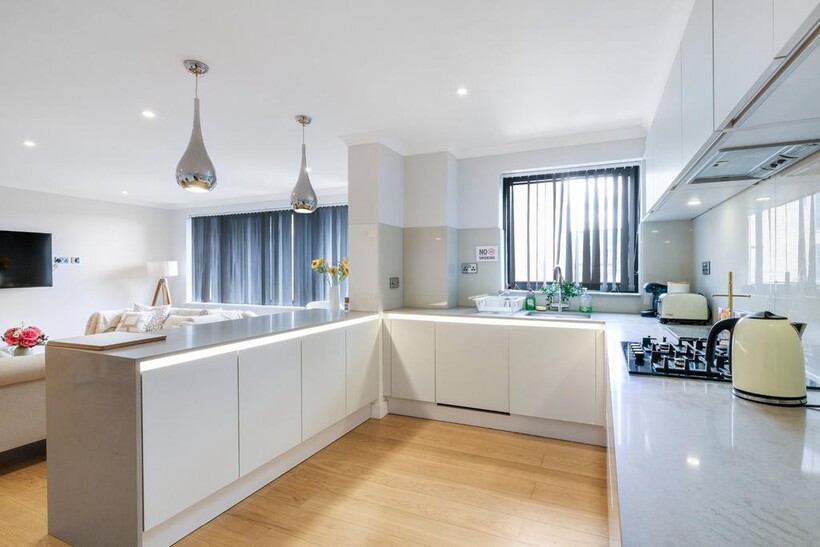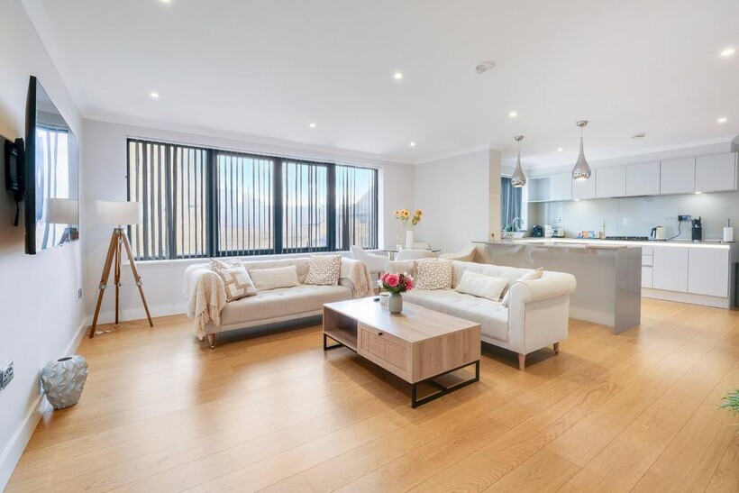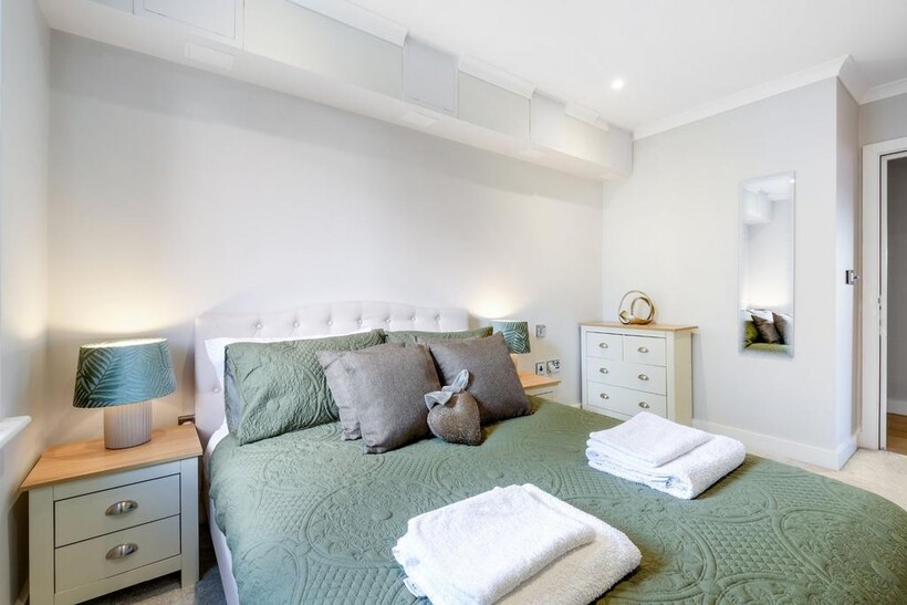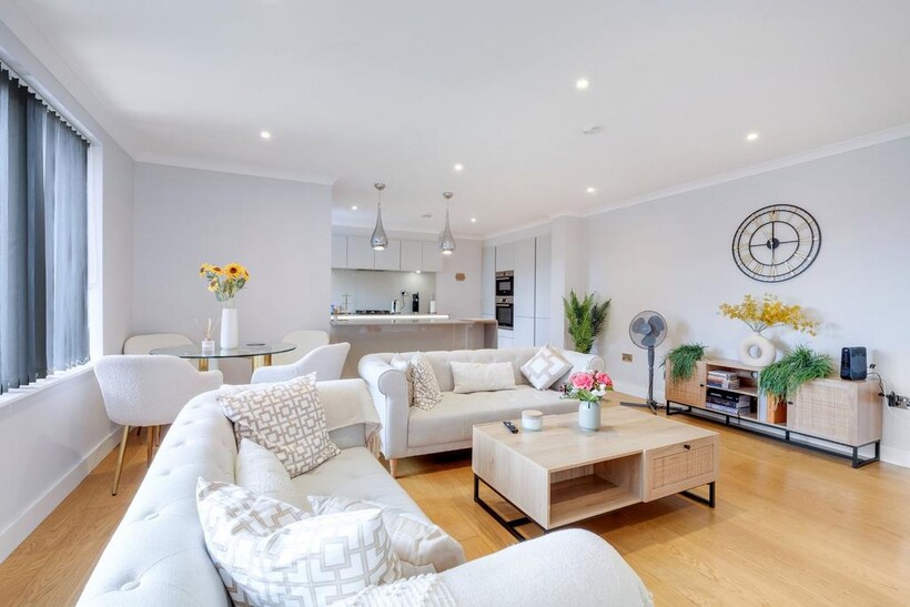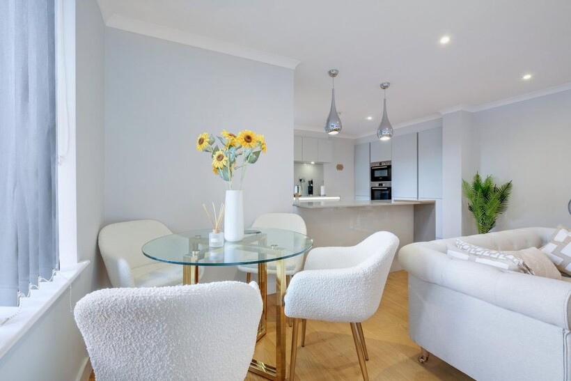 Concord Hse 08 in Brentford, West London is a two-bedroom, two-bathroom superior apartment with parking and WiFi with under floor heating all throughout.The living room has comfortable seating, plus a dining area with table and chairs. We provide a Smart TV with internet connection so you can log into your Netflix or other services.The kitchen is of course fully equipped including Fridge/Freezer, Dishwasher, Washer/Dryer, Microwave, Kettle, Toaster, etc as well as utensils, crockery etc. For sleeping, the main bedroom has a double bed along with a single bed plus wardrobes and bedside tables etc. The second bedroom has a king-fixed bed and bedside tables etc. The family bathroom comprises shower over bath with sink and toilet and an en-suite to the master bedroom. Parking is allocated within apartment grounds. Concord House is perfectly situated on Brentford High Street, step outside and you'll find a delightful array of Thai, Japanese, and Turkish restaurants. Further along the high street discover a variety of coffee shops, fast food outlets and an array of shops and restaurants, all within easy reach. Traveling to and from the apartment is convenient and flexible. Brentford Station is just an 11-minute walk away, providing easy access to public transportation. If you're driving, you'll appreciate the close proximity to both the M4 and A4.