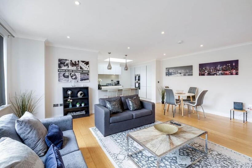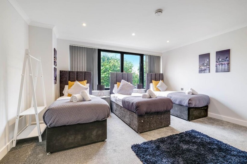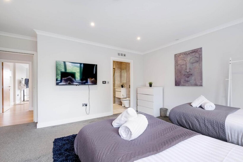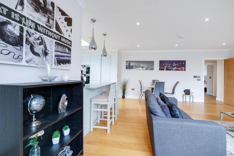 Concord Hse 12 in Brentford, West London is a two-bedroom, two-bathroom superior apartment with parking and WiFi with under floor heating all throughout.The living room has comfortable seating including a sofa bed, plus a dining area with table and chairs. We provide a Smart TV with internet connection so you can log into your Netflix or other services.The kitchen is of course fully equipped including Fridge/Freezer, Dishwasher, Washer/Dryer, Microwave, Kettle, Toaster, etc as well as utensils, crockery etc.For sleeping, the main bedroom has a super king-size bed along with a single bed plus wardrobes and bedside tables etc. The second bedroom has a king-sized bed and bedside tables etc. The family bathroom comprises shower over bath with sink and toilet and an en-suite to the master bedroom. Parking is allocated within apartment grounds. Concord House is perfectly situated on Brentford High Street, step outside and you'll find a delightful array of Thai, Japanese, and Turkish restaurants. Further along the high street discover a variety of coffee shops, fast food outlets and an array of shops and restaurants, all within easy reach. Traveling to and from the apartment is convenient and flexible. Brentford Station is just an 11-minute walk away, providing easy access to public transportation. If you're driving, you'll appreciate the close proximity to both the M4 and A4.