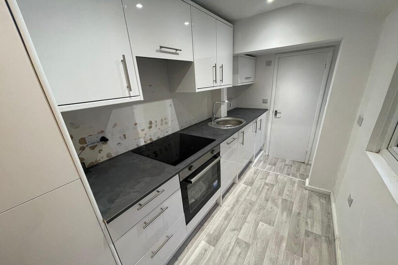 -A well-equipped kitchen with integrated appliances: dishwasher, washing machine, and fridge freezer.