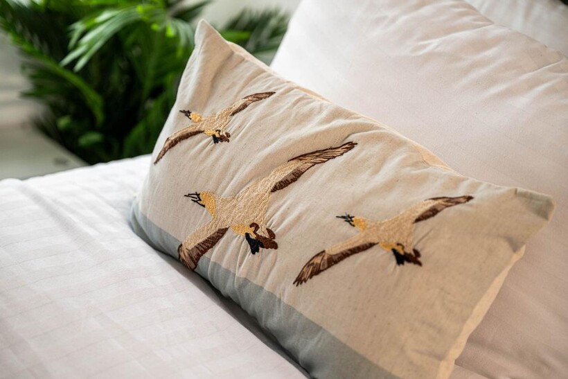 The tranquil bedroom offers a peaceful retreat, complete with a comfortable King sized double bed with soft linens; complete with hanging space.