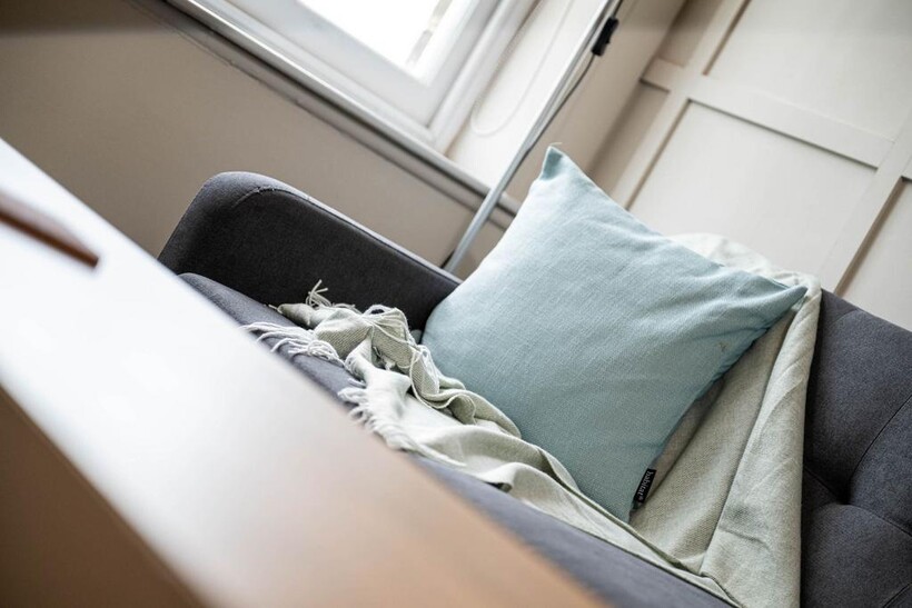 Welcome to our lovely one-bedroom, one-bathroom apartment, offering a cozy retreat in a serene neighborhood. The historic exterior of this imposing 18th Century bank building exudes solidity and charm, hinting at the comfort and tranquility that await within.Upon entering the apartment, you're greeted by a warm and inviting living space. The open-concept layout seamlessly connects the living area with the kitchen. The living area is thoughtfully designed with comfortable seating and stylish décor., providing the perfect space to relax and unwind after a long day. The well-appointed kitchen, features modern appliances, ample storage, and sleek countertop.