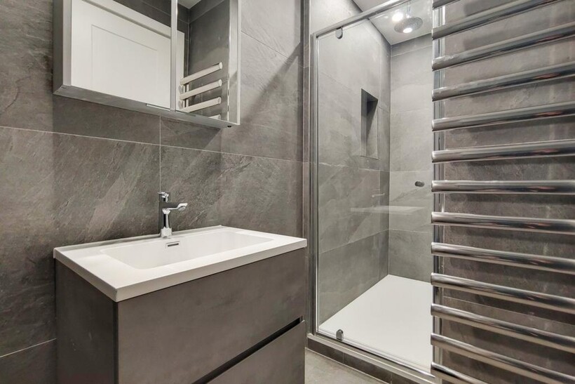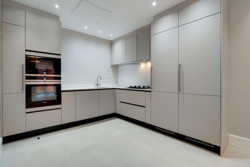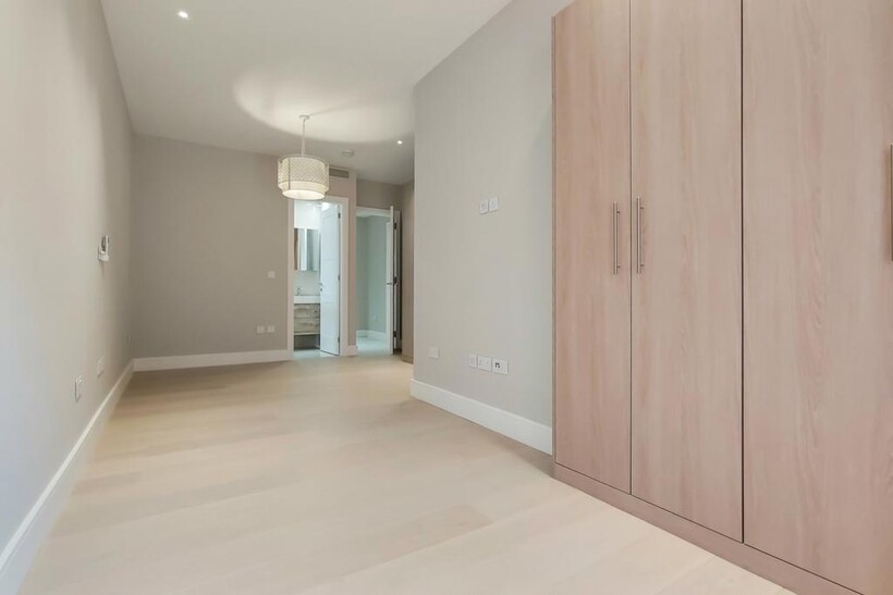 Nestled within a newly refurbished, elegantly designed red-brick period conversion, this stunning three-bedroom apartment spans 1,079 sq ft and features a private walled patio extending from the spacious open-plan reception room and kitchen. Located on the lower ground floor, the property showcases a fresh, contemporary interior design. In addition to the three bedrooms, the apartment includes a walk-in wardrobe/storage room and offers access to beautifully landscaped communal gardens.