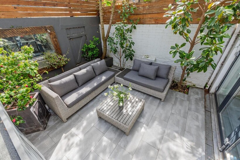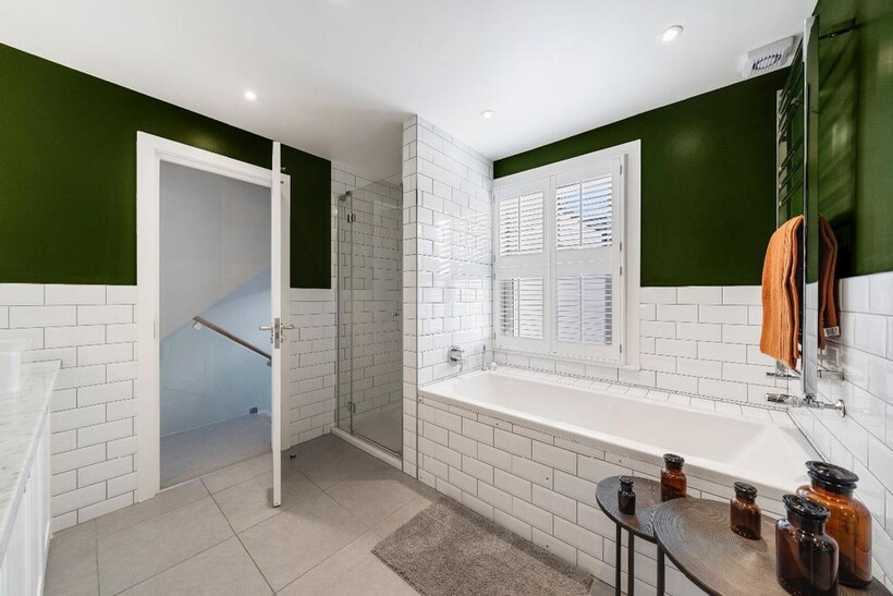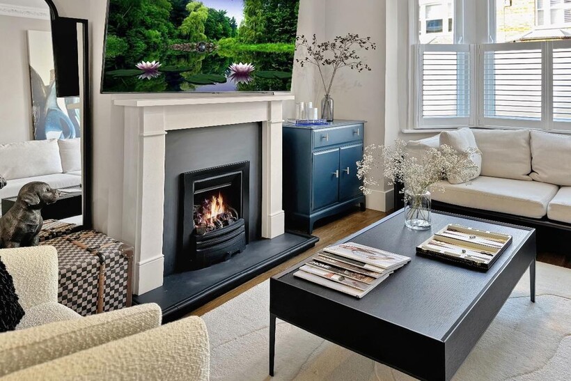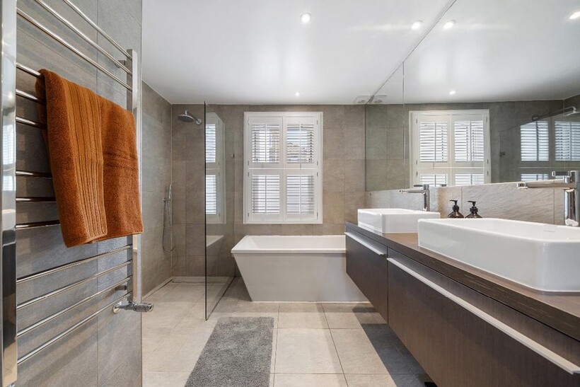 Immaculately presented, the entrance leads to a generous living area, featuring a large flat screen TV, gas fireplace and a feature wall bookcase. There's a convenience of ground floor WC and well thought out understairs storage, along with a separate shoe cabinet in the entryway. On the ground floor, the large kitchen and dining area are an idyll for seasoned chefs with a gas stove, filtered water on tap and a built-in insinkerator. The kitchen french doors open onto a substantial mature private garden with a desirable south aspect and high end furniture.