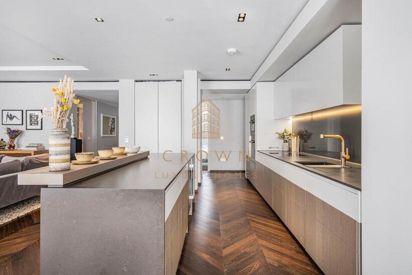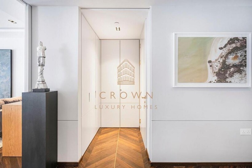 The kitchen has expansive stone-worktops, modern Miele appliances and an incredible range of timber-veneered units, ensuring there’s always plenty of room to express yourself no matter what’s on the menu. In the master bedroom, excellent fixtures, a walk-in wardrobe and large en-suite bathroom help create a warm, calm and relaxing environment. The second bedroom also has its own en-suite, whilst the third bedroom is directly opposite another wonderfully rendered bathroom, providing complete privacy.
