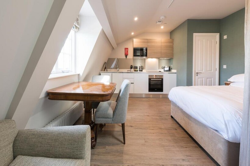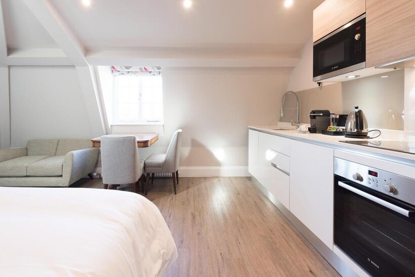 These characterful luxury studio apartments offer the perfect place for you to relax and unwind. Offering open plan living the apartments offer sleeping, living, dining and a separate shower room and WC. All apartments feature an oven and microwave alongside a washing machine and dishwasher