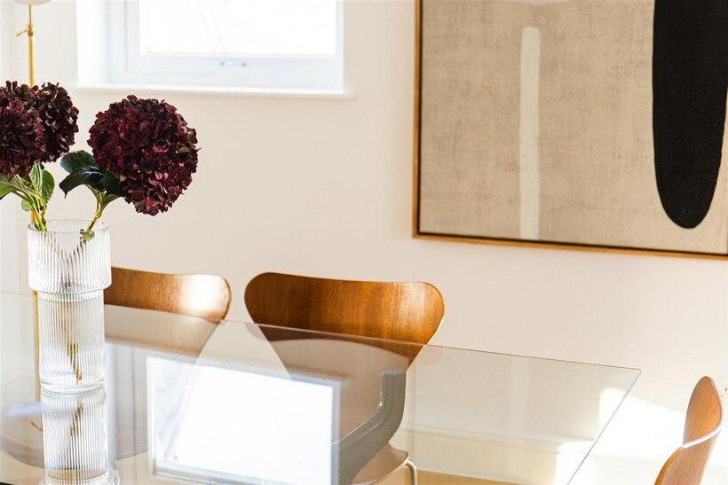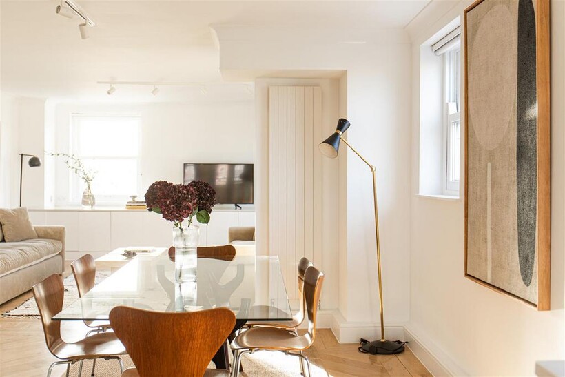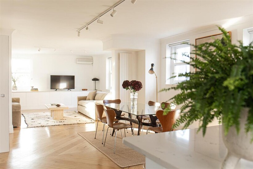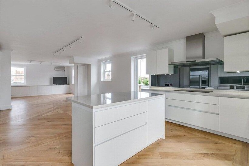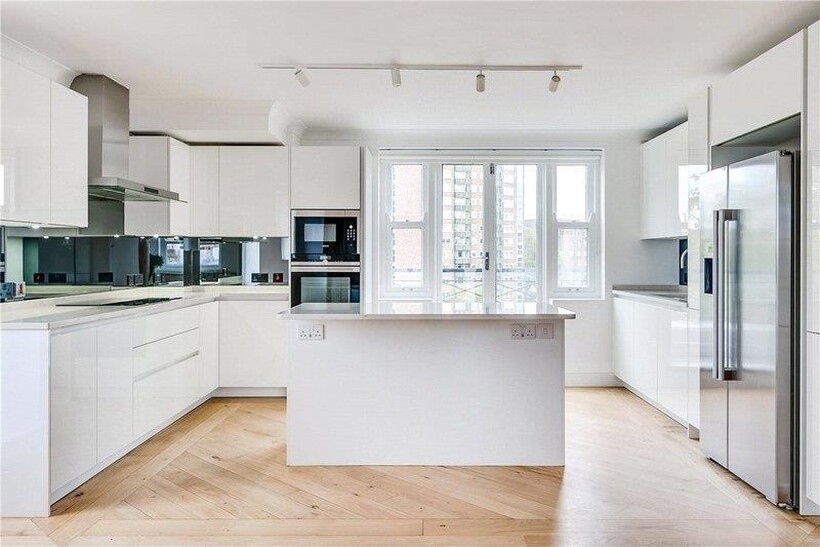 This exquisite 5 bedroom, 4 bathroom penthouse is a rare gem. Fully air conditioned with private lift access encompassing an impressive 2,320 square feet (215.5 square meters) of elegantly designed living space, this residence provides the ultimate in modern sophistication. The apartment boasts spacious wrap-around terraces, which offer views of the stunning 3 acres of award-winning private gardens. These outdoor spaces create a serene retreat, perfect for entertaining guests or relaxing in the sun. At the heart of the apartment lies a large, open-plan living and dining area, designed with both style and comfort in mind with bespoke sofas and vintage handwoven Moroccan rugs. Each of the five beautiful bedrooms have been meticulously designed, with luxurious contemporary finishes, and an abundance of natural light.Europa House is also within close proximity to the American School London (ASL), Regents Park, canal side walks and dining. The building has underground parking; rent includes all bills.