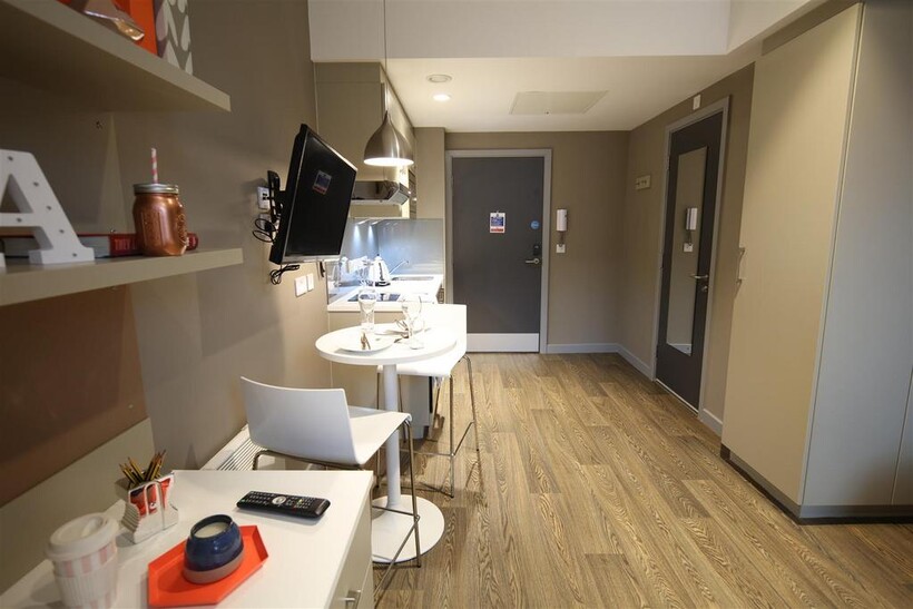 Urban Study Jesmond is a high-spec, contemporary and bright student and young professional apartment building, with a glass fronted entrance to the communal area that stretches the entire length and breadth of the building.It's close to Newcastle and Northumbria University campuses as well as the city centre. Shopping centers, bars, restaurants, nightlife and parks are all on your doorstep. You can walk everywhere, but the bus stop is also just outside the front doors.