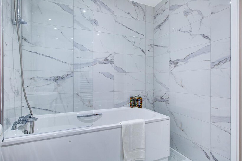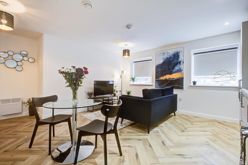 Each of our individually designed one bed apartments in the heart of Mitcham are perfect for the extended stay or those looking for a larger space to unwind after a busy day. Relax in a separate lounge incorporating a fully fitted kitchen, dining area, and living room before you retreat to your bedroom. The apartment boasts a fully fitted kitchen, dining space with bathtub in bathroom