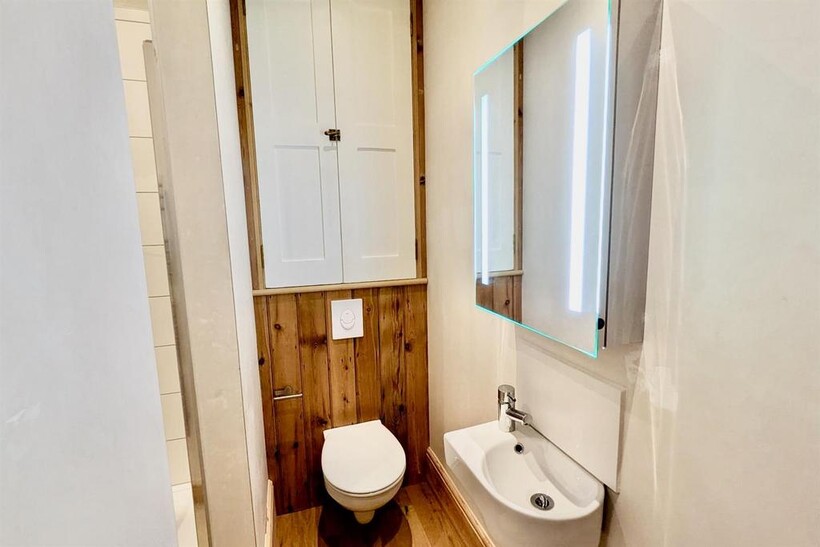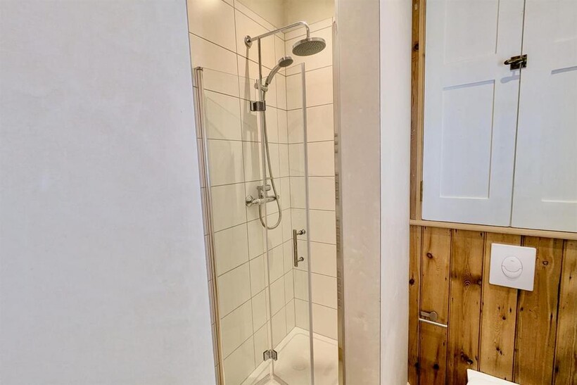 The shower room has been finished to the highest standard and gives a sense of the luxurious lifestyle, akin to living in a boutique hotel. There is simple white tiling, a heated towel rail, demist mirror cabinet and natural linoleum flooring with