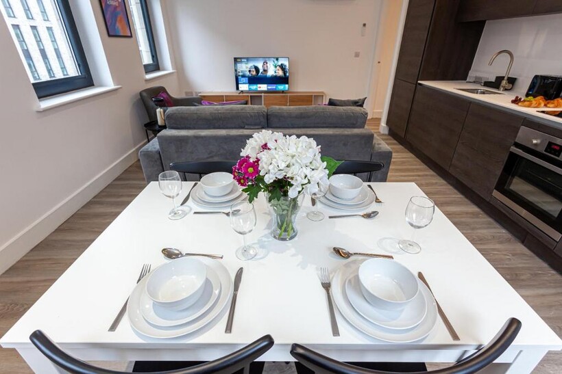Located within a 10 minute walk to the swanky Spinningfields, this apartment is perfectly positioned for the high quality restaurants and bars Manchester has to offer