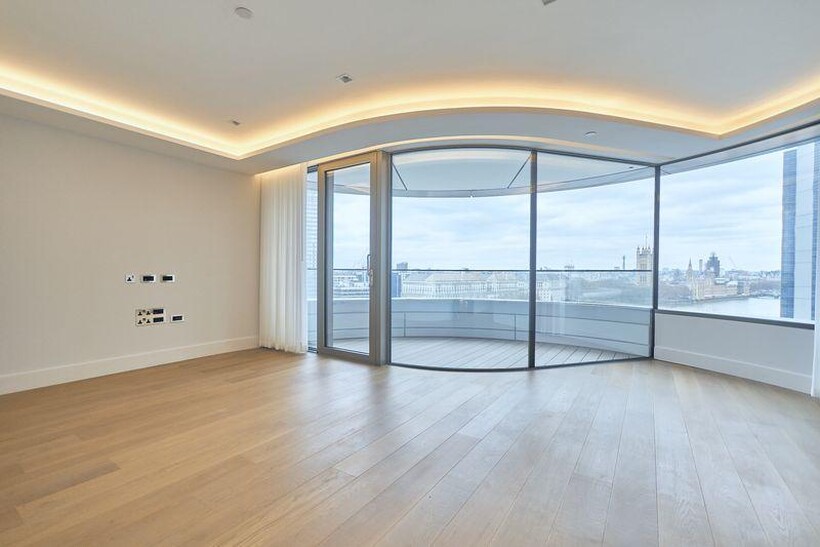This Unfurnished Three bedroom three bathroom apartment is in Block B of The Corniche development designed by Foster + Partners set on the South side of the River Thames on Albert Embankment.The developments elevations stand out features are the curved balconies with the Reception room and Master bedroom incorporating a curved glass floor to ceiling panoramic window.