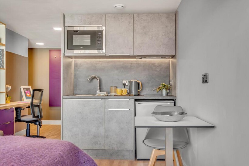 High-spec studio perfectly designed with student living in mind with all the luxury and added extras of a boutique hotel, from the flat screen TV and contemporary en-suite to the plush king size bed and designer fitted kitchen.