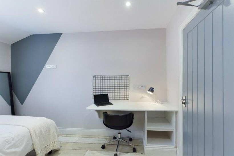 In 2022, this stylishly refurbished property underwent a transformation, now offering eight double bedrooms furnished with desks, comfortable chairs, and ample storage, complemented by two modern bathrooms. The chic living room boasts large, comfortable sofas and a sizable flat-screen TV, perfect for socializing, alongside a spacious dining table for shared meals. The kitchen is equipped with modern appliances, multiple fridges, and a washing machine. Superfast broadband and utility bills are all included for added convenience. Every piece of furniture has been meticulously selected to ensure both comfort and style.