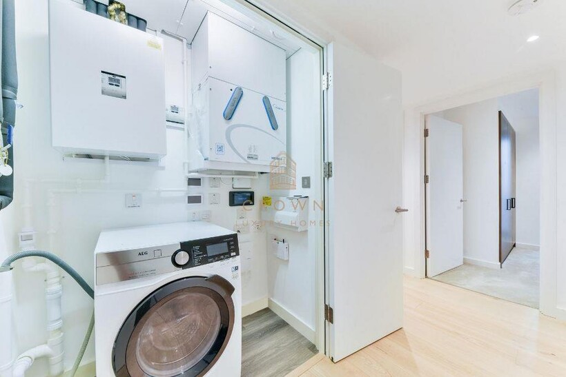 The bedrooms are spacious, carpeted and feature built-in wardrobes, whilst more large windows provide an abundance of light throughout the day. Both of these rooms have access to a good-sized, exquisitely finished bathroom: one an en-suite, the other directly opposite, providing complete privacy. There’s also a utility cupboard that houses your washer/dryer, there to make life just that little bit easier.