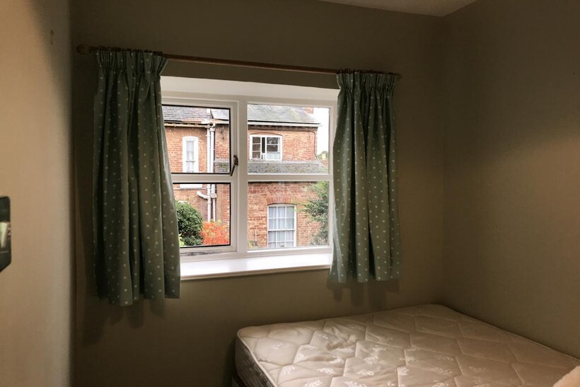 Upstairs is the tiled family bathroom with plenty of light, overlooking the back garden. The main bedroom has the feature arched window overlooking the front cottage gardens, full length curtains are hung from a pole. Ample storage in large wardrobes, with shelving and hanging space inside.