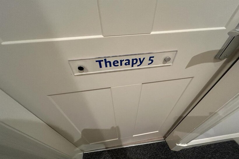 A secure door entry system with audio-visual access panels in every room, ensuring the safety of all therapists (patients can be granted access from the door panel within each room).