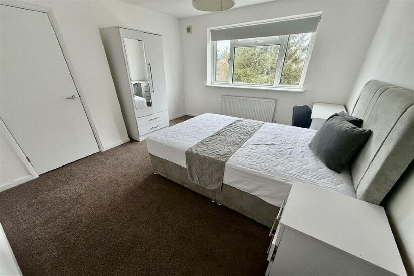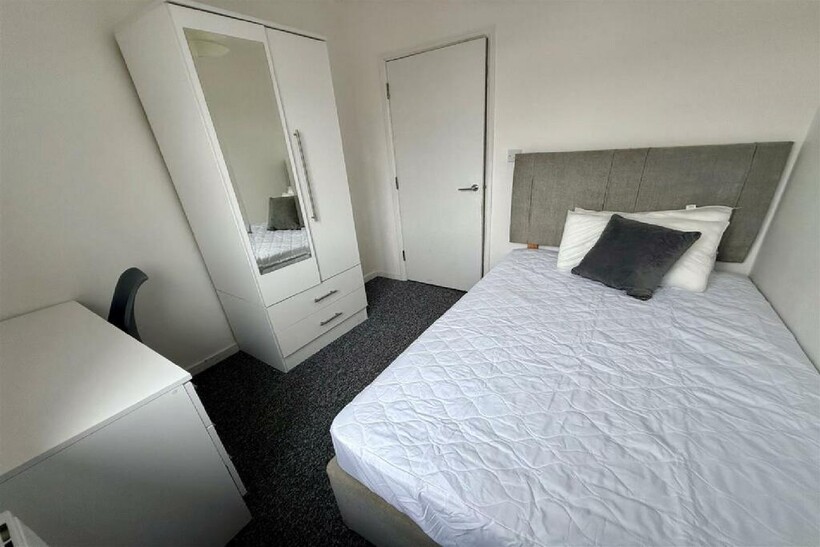 The property is fully furnished throughout, with each bedroom featuring a small double bed, wardrobe, desk, and desk chair, ensuring a comfortable and functional space for studying and relaxing.
