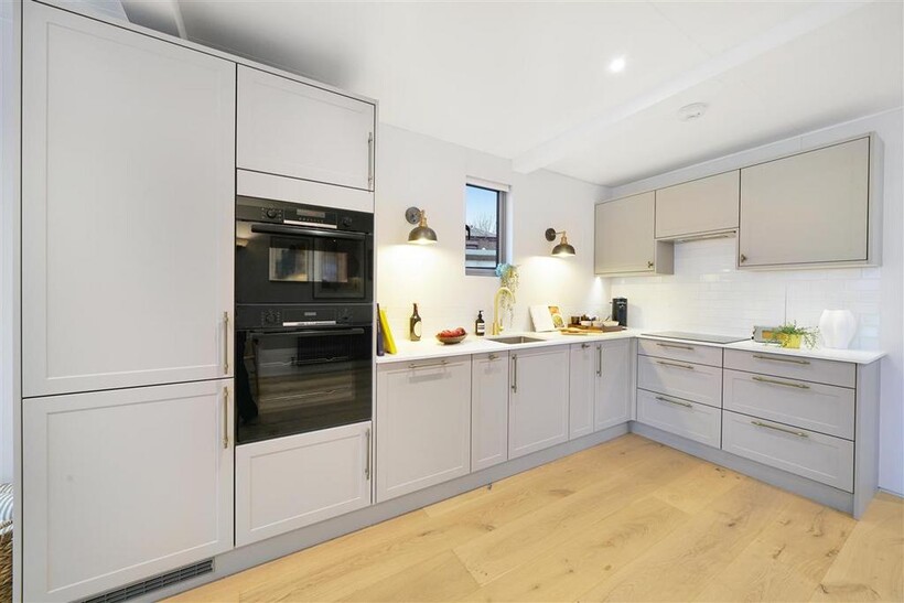Bright and Beautiful Floating Home in the Historic Cheyne Walk MooringsThis stunning houseboat offers an exceptional blend of contemporary elegance and riverside charm. Designed to maximize light and space, the upper deck is almost entirely dedicated to a generous reception area, featuring an open-plan kitchen, separate dining and seating zones, and a striking sloping glass-sided rear wall that opens onto a spacious south-facing terrace. This seamless indoor-outdoor connection floods the space with natural light and provides breathtaking river views.
