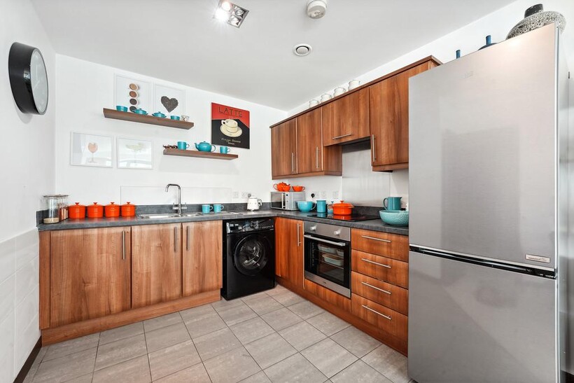 Located in the award-winning Bridges Wharf riverside development, residents benefit from the convenience of a 24-hour concierge service, secure allocated underground parking, bike storage, CCTV, lift access and a well maintained private communal courtyard garden. Both bedrooms are double rooms, both with fitted wardrobes, the smaller of the two rooms has sliding doors providing access to the balcony.