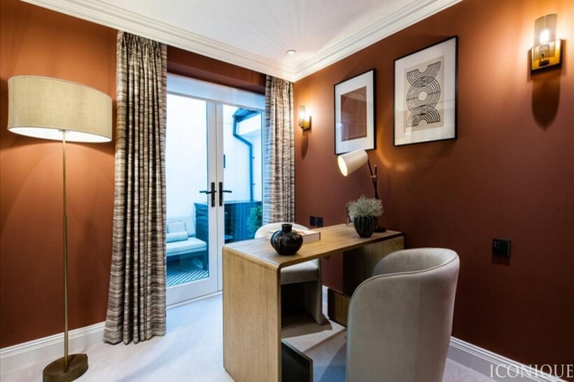 The private courtyard terrace is accessible from the reception area, bedrooms, and study, offering a tranquil setting for relaxation or entertaining.
