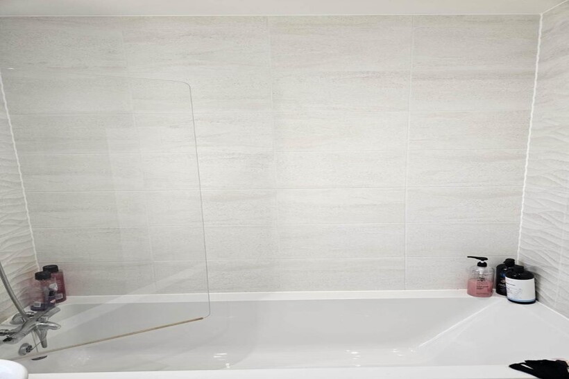 The bathroom is fully tiled and overlooking the garden with walk-in, gas heated shower and bath.