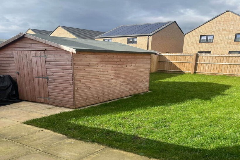 The kitchen leads to a large ornamental garden that includes garden furniture. There is lots of outside space.