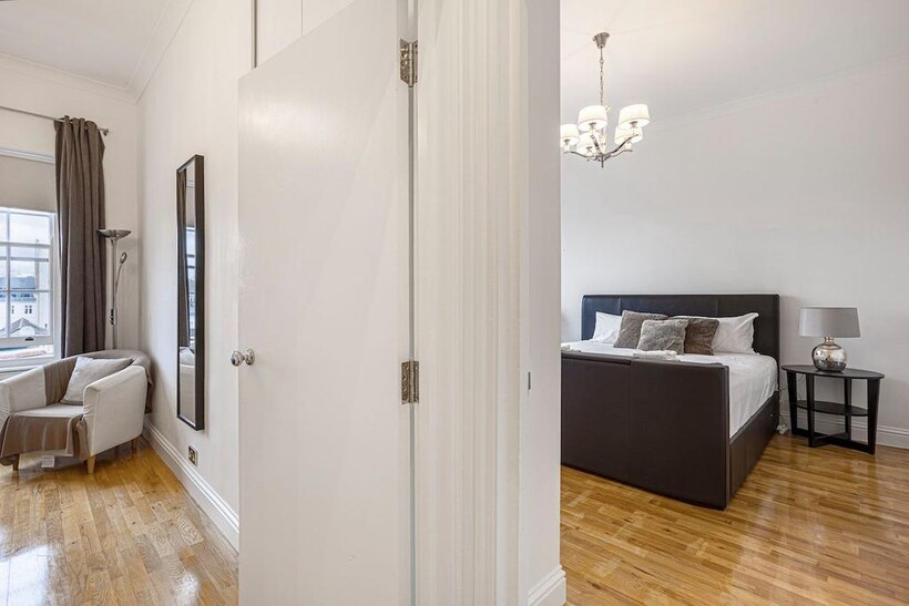 SHORT LET - Exceptional Two-Bedroom Apartment with Stunning Views of Hyde Park.This impressive two-bedroom lateral apartment, spanning 915 sq ft, is located on the third floor of a gated, stucco-fronted building, offering a harmonious blend of elegance and contemporary living.