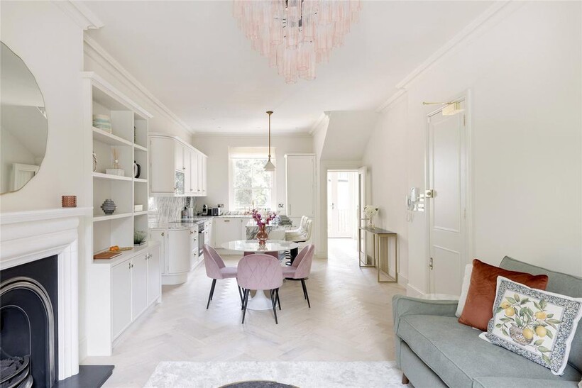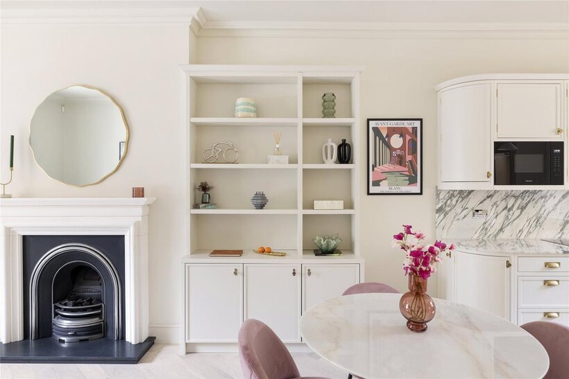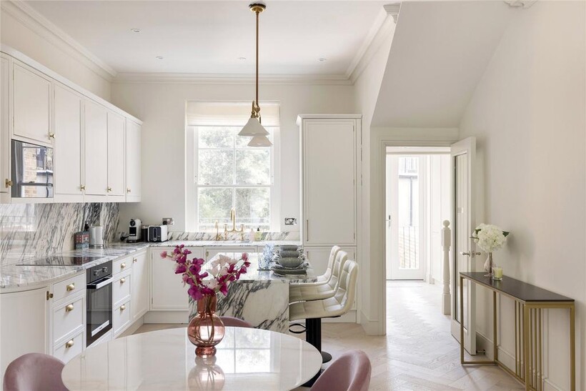 Recently reimagined to exacting standards, this Talbot Road home is a masterclass in elegance. Opulent yet inviting, its interiors unfold across two impeccably designed floors, where a generous footprint is accentuated by a considered material palette.Entering on the raised-ground floor, the open-plan kitchen, dining, and reception room makes an immediate impression. Here, underfloor-heated Ted Todd flooring meets bespoke cabinetry, tying each space together with cohesion. Contemporary influences shape the design, yet heritage echoes throughout – soaring ceilings, a statement fireplace, and newly installed double-glazed timber sash windows – pay homage to the home’s past.