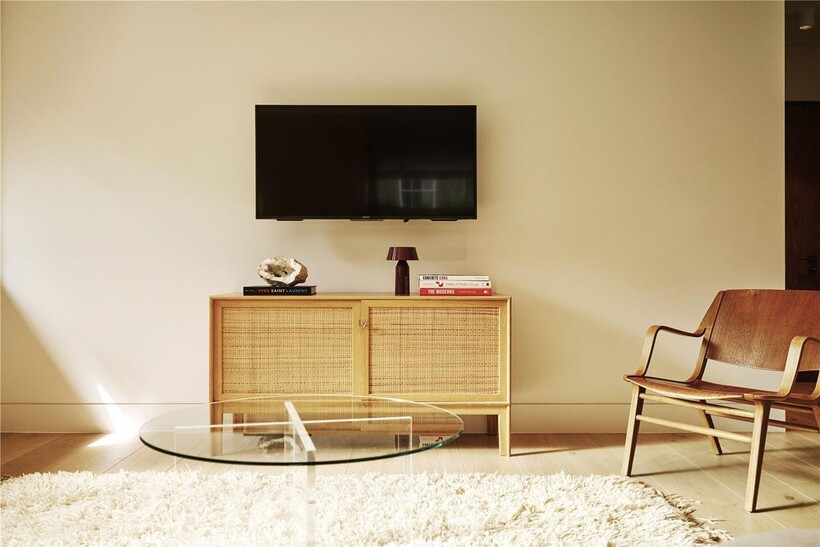The open-plan kitchen and living area feature stunning views of a planted courtyard, creating a tranquil yet contemporary ambiance. With wooden floors throughout and an exposed brick wall running the length of the space, this apartment is both functional and chic. The bedroom boasts a luxurious super king bed and a 32" smart TV, while the bathroom offers the convenience of a bath and shower combination. Perfect for pet owners, this home welcomes furry friends under specific terms and conditions.Designed by award-winning architects Morrow + Lorraine, the building is a masterpiece of thoughtful design and curated aesthetics. Residents can enjoy collectable mid-century furniture, curated art, and photography that elevate the living experience. Modern conveniences include underfloor heating, a Marshall Bluetooth speaker, and a turntable with a curated vinyl collection. For added convenience, the property features bicycles for exploring the local area and exclusive access to The Third Space health clubs with preferred rates. Comprehensive services such as a 24-hour concierge, meet-and-greet options, airport transfers, and workspaces with complimentary high-speed Wi-Fi ensure a seamless and luxurious stay.