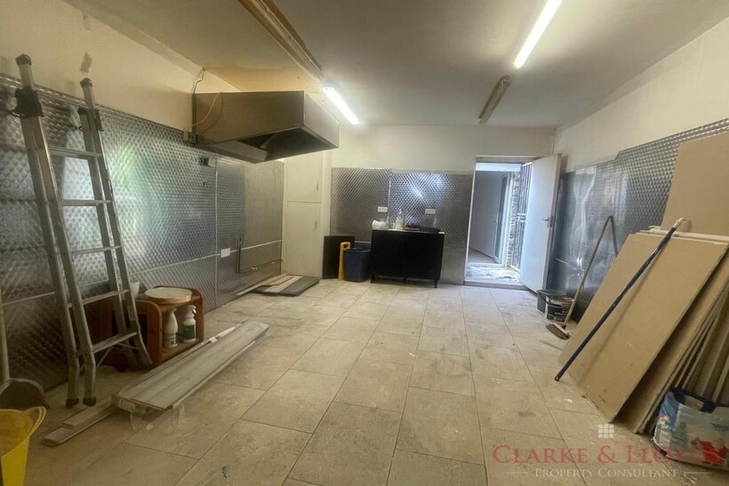 The property features a generous layout, ideal for a café, restaurant, or takeaway, with ample space for both customer seating and kitchen/prep areas. The basement provides additional storage or potential office space.