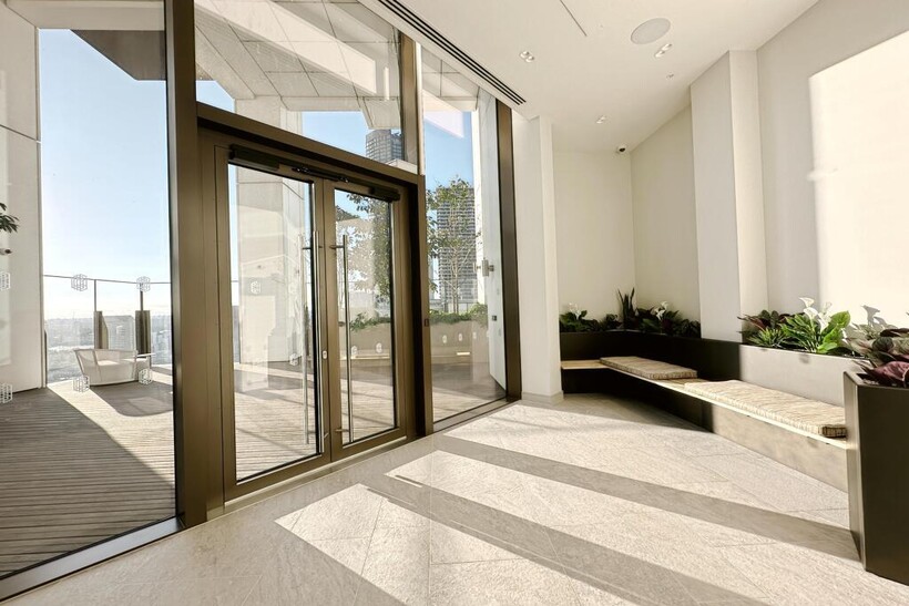 The expansive open-plan living area is bathed in natural light, enhanced by floor-to-ceiling windows that provide uninterrupted panoramic views. The custom-designed kitchen is equipped with top-tier Siemens appliances, sleek cabinetry, and refined quartz stone worktops. The generously sized bedrooms feature bespoke built-in wardrobes, while the elegant bathroom offers designer fittings, underfloor heating, and a luxurious rainfall shower. Additional upscale features include engineered wood flooring, comfort cooling, and integrated smart home technology.