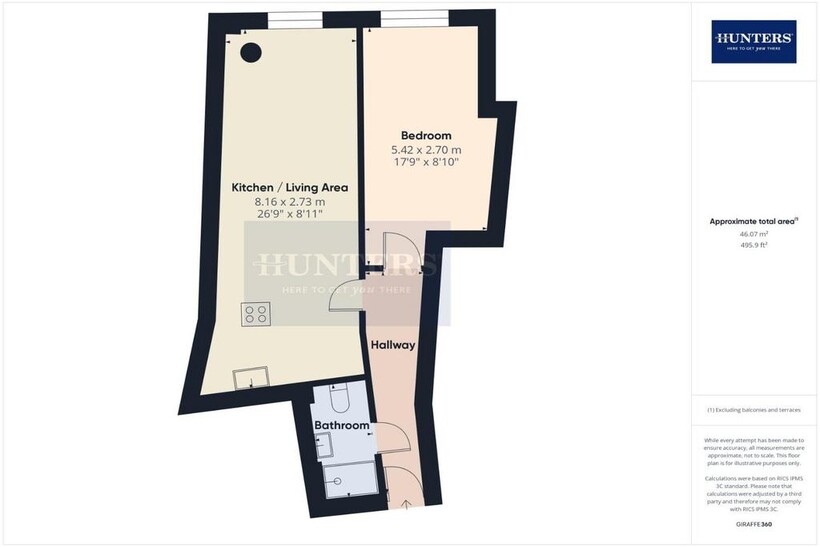Kitchen / Living Room - 8.16 x 2.73 (26'9" x 8'11") -